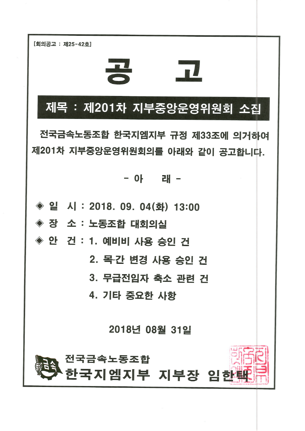 Á¦201Â÷ ÁöºÎÁ߾ӿÀ§¿øÈ¸ ¼ÒÁý°ø°í