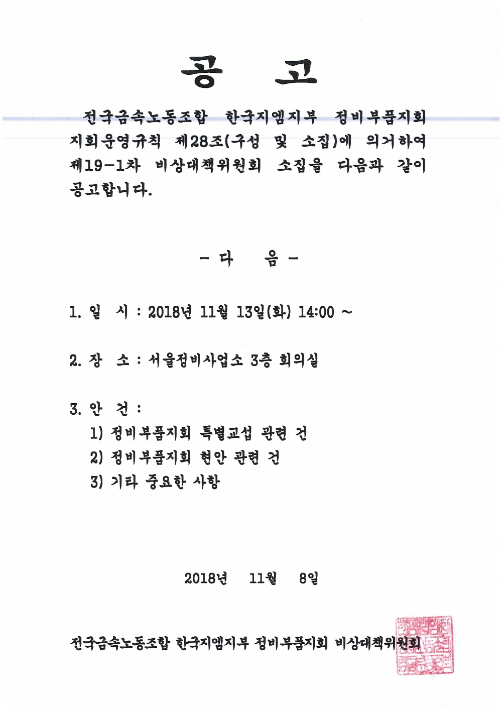 Á¦ 19-1Â÷ ºñ»ó´ëÃ¥À§¿øÈ¸ ¼ÒÁý °ø°í