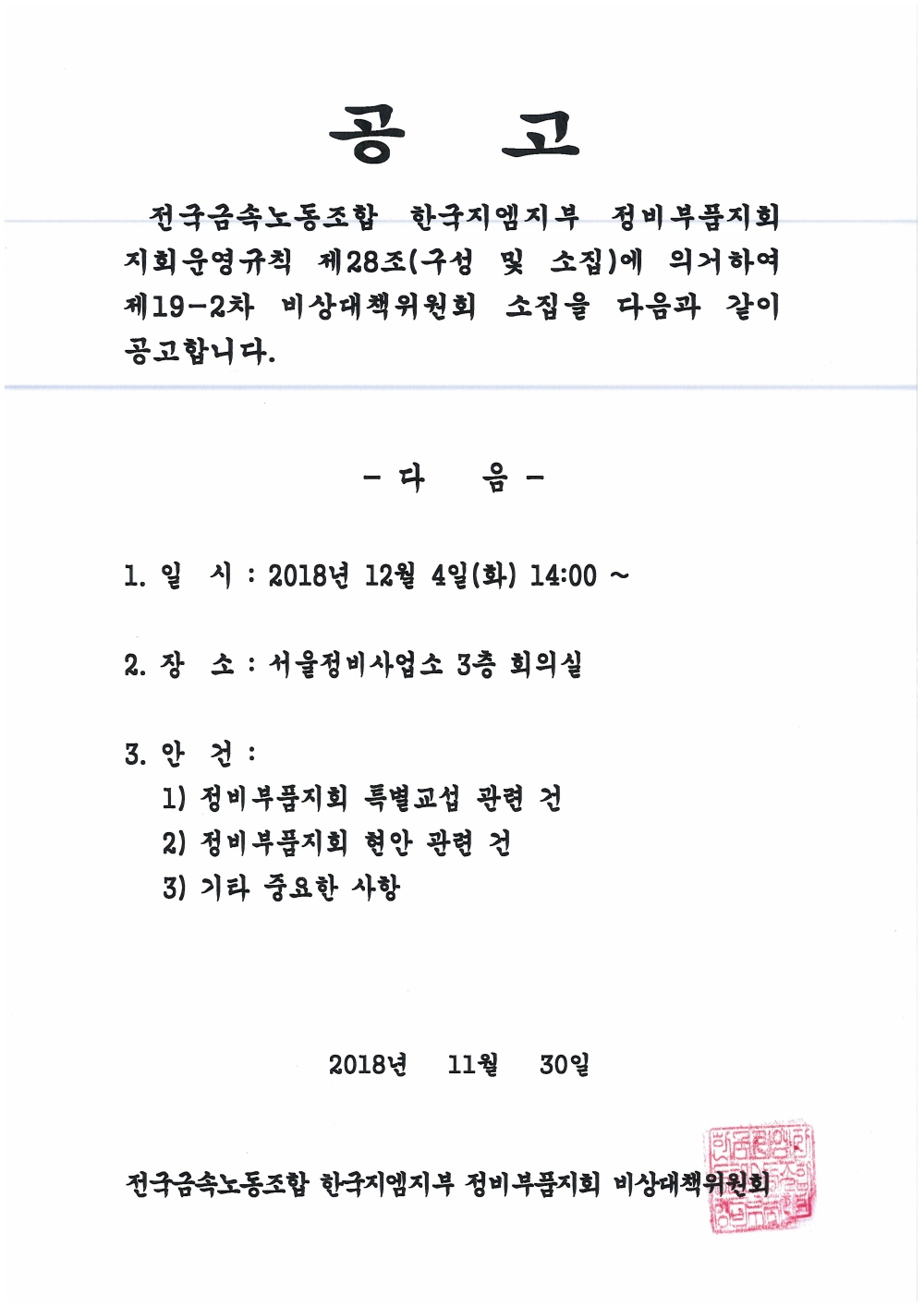 Á¦ 19-2Â÷ ºñ»ó´ëÃ¥À§¿øÈ¸ ¼ÒÁý °ø°í