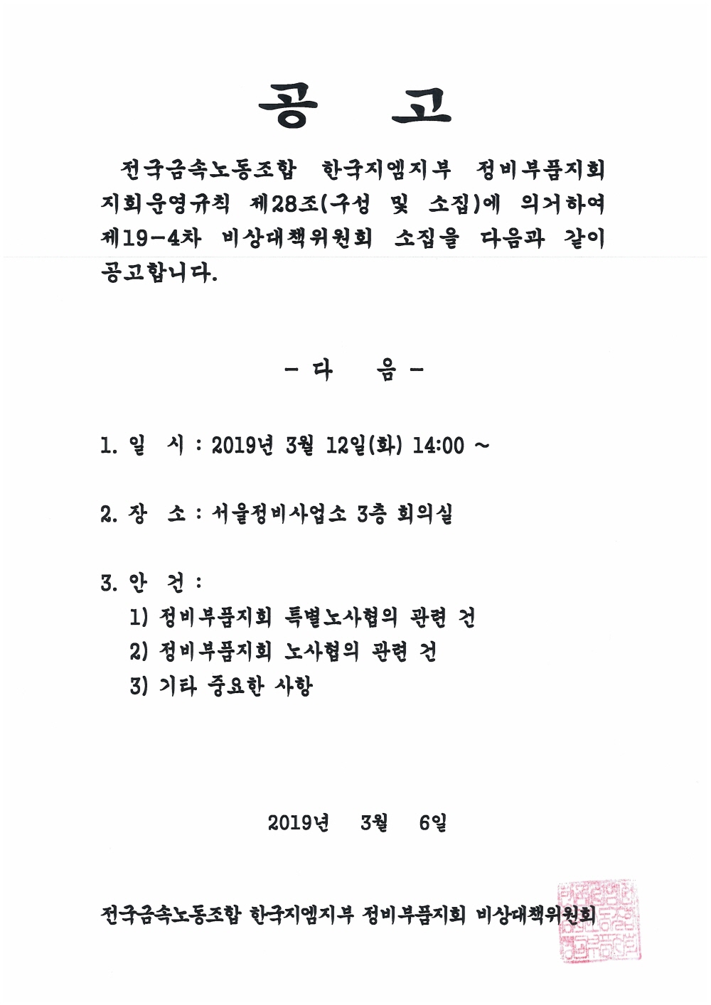 Á¦19-4Â÷ ºñ»ó´ëÃ¥À§¿øÈ¸ ¼ÒÁý°ø°í