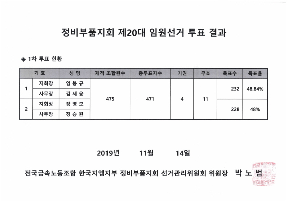 Á¦ 20´ë ÀÓ¿ø¼±°Å ÅõÇ¥ °á°ú