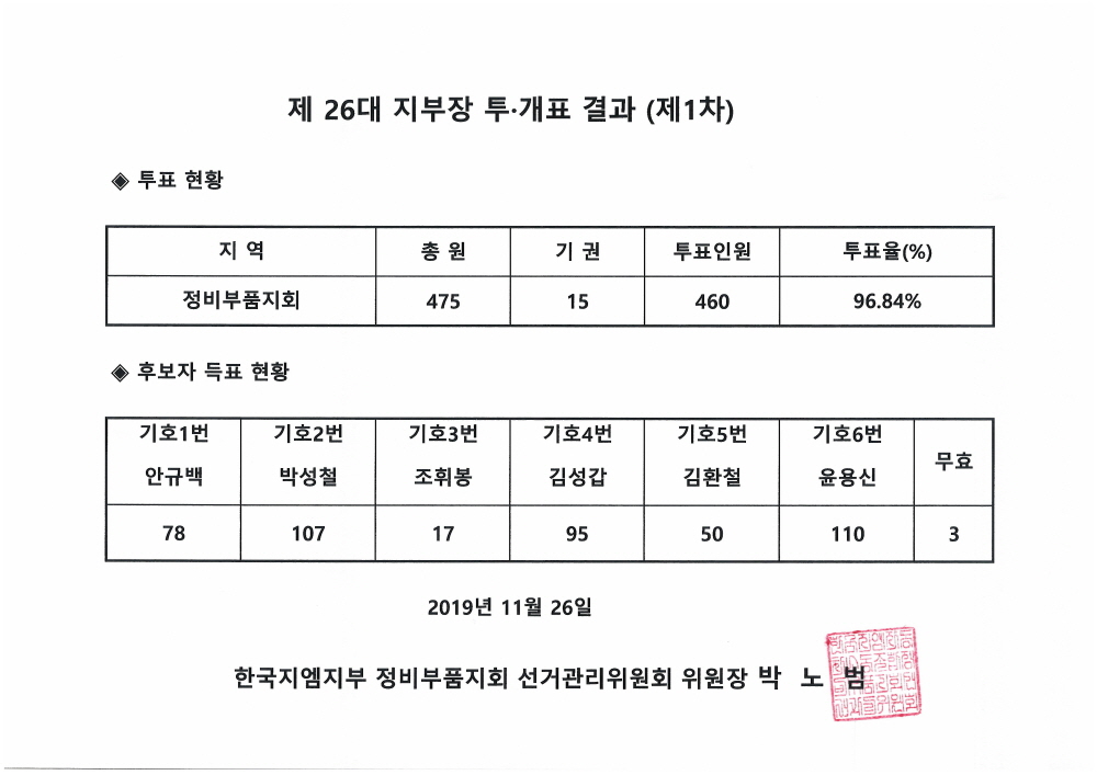 26´ë ÁöºÎÀå 1Â÷ °³Ç¥ °á°ú