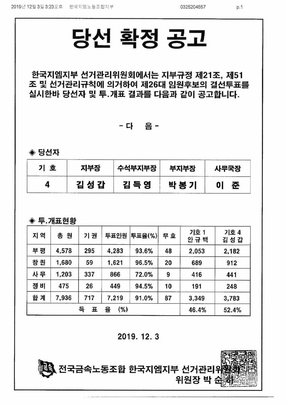 Á¦ 26´ë ÁöºÎÀå ´ç¼± È®Á¤ °ø°í