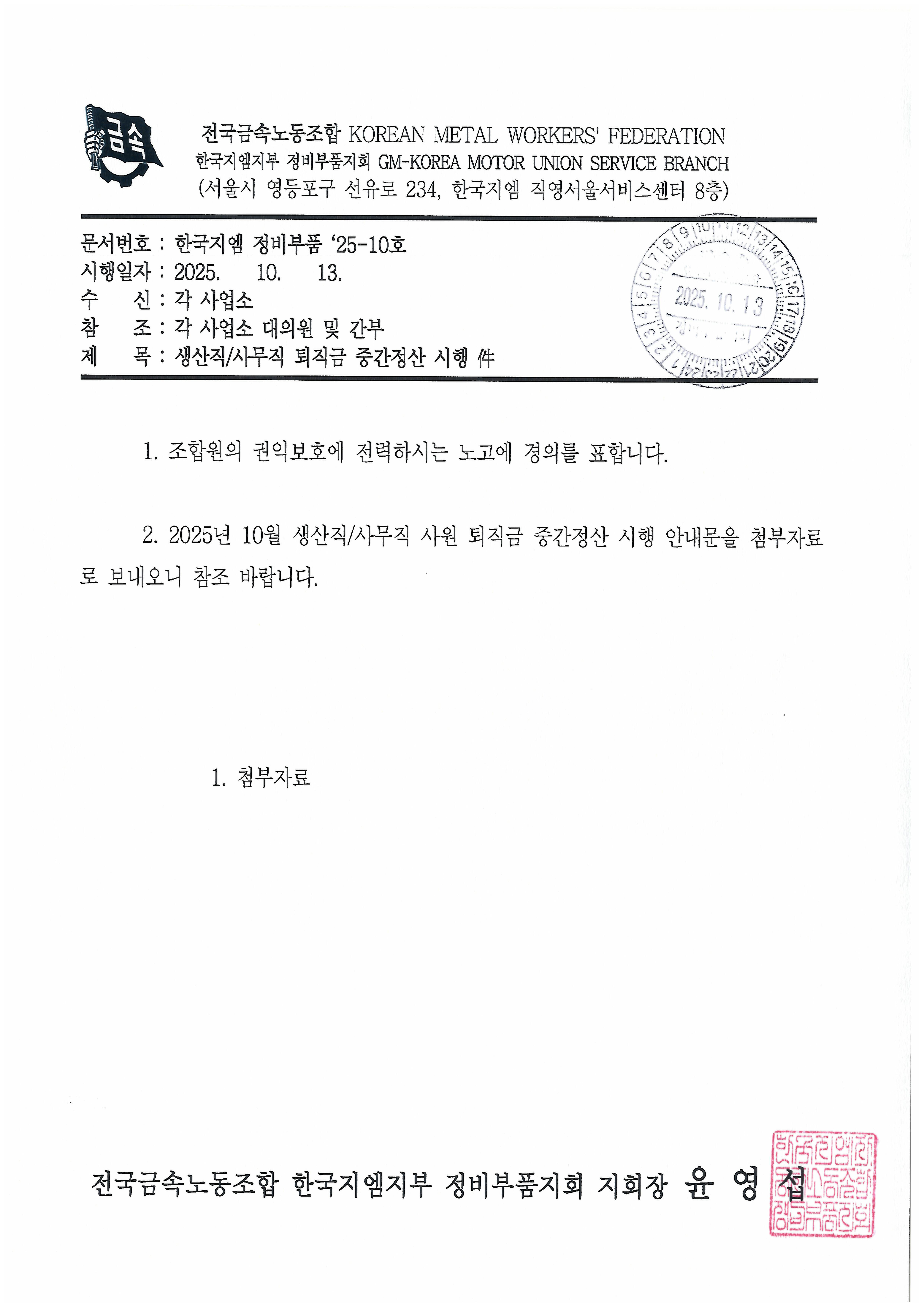 2025³â 10¿ù ÅðÁ÷±Ý Áß°£Á¤»ê ½ÃÇà¾È³»