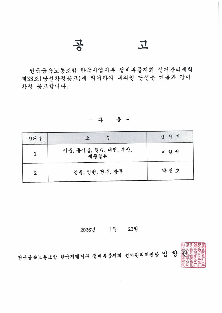 2026³â ±Ý¼Ó´ëÀÇ¿ø ´ç¼±È®Á¤°ø°í