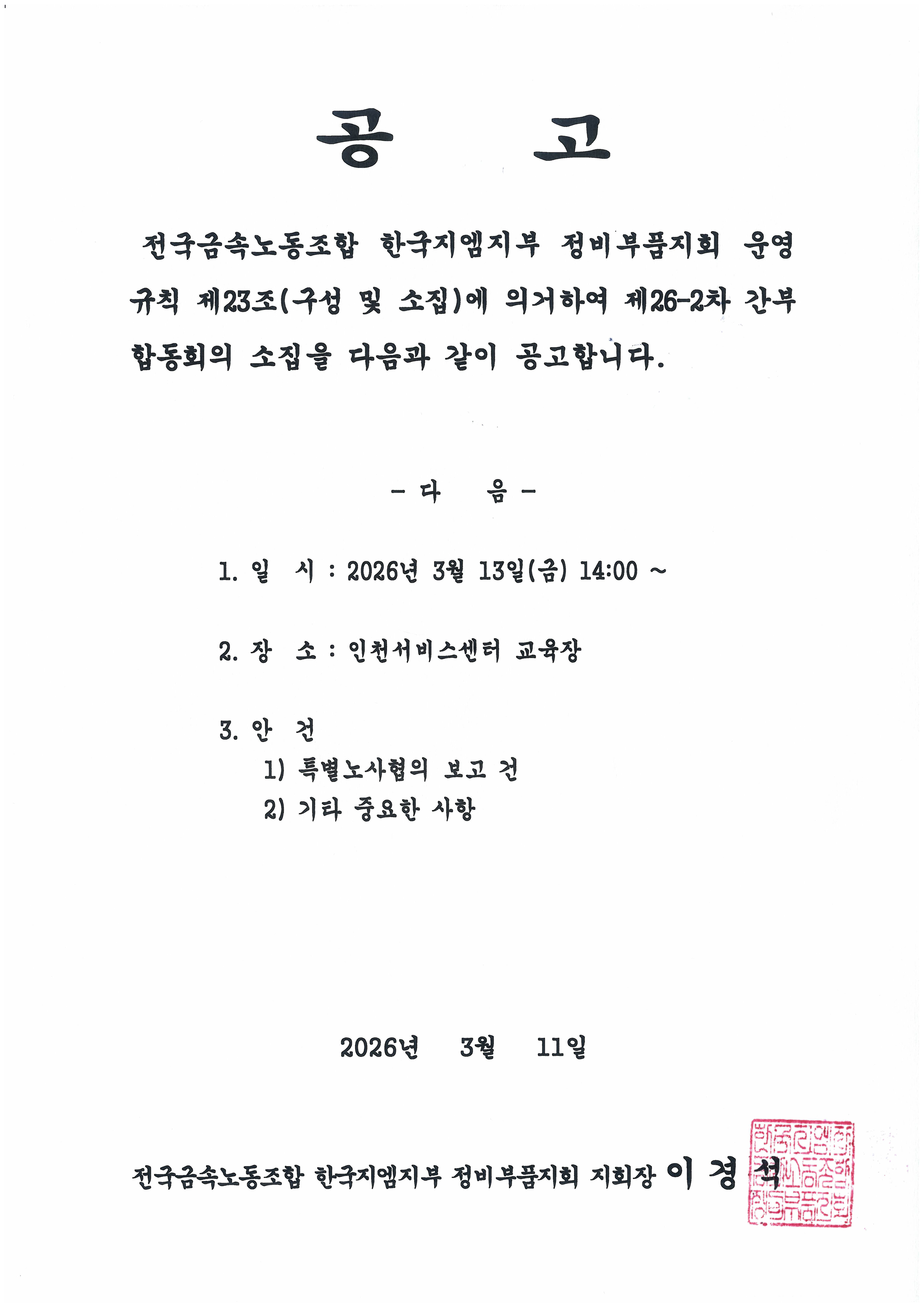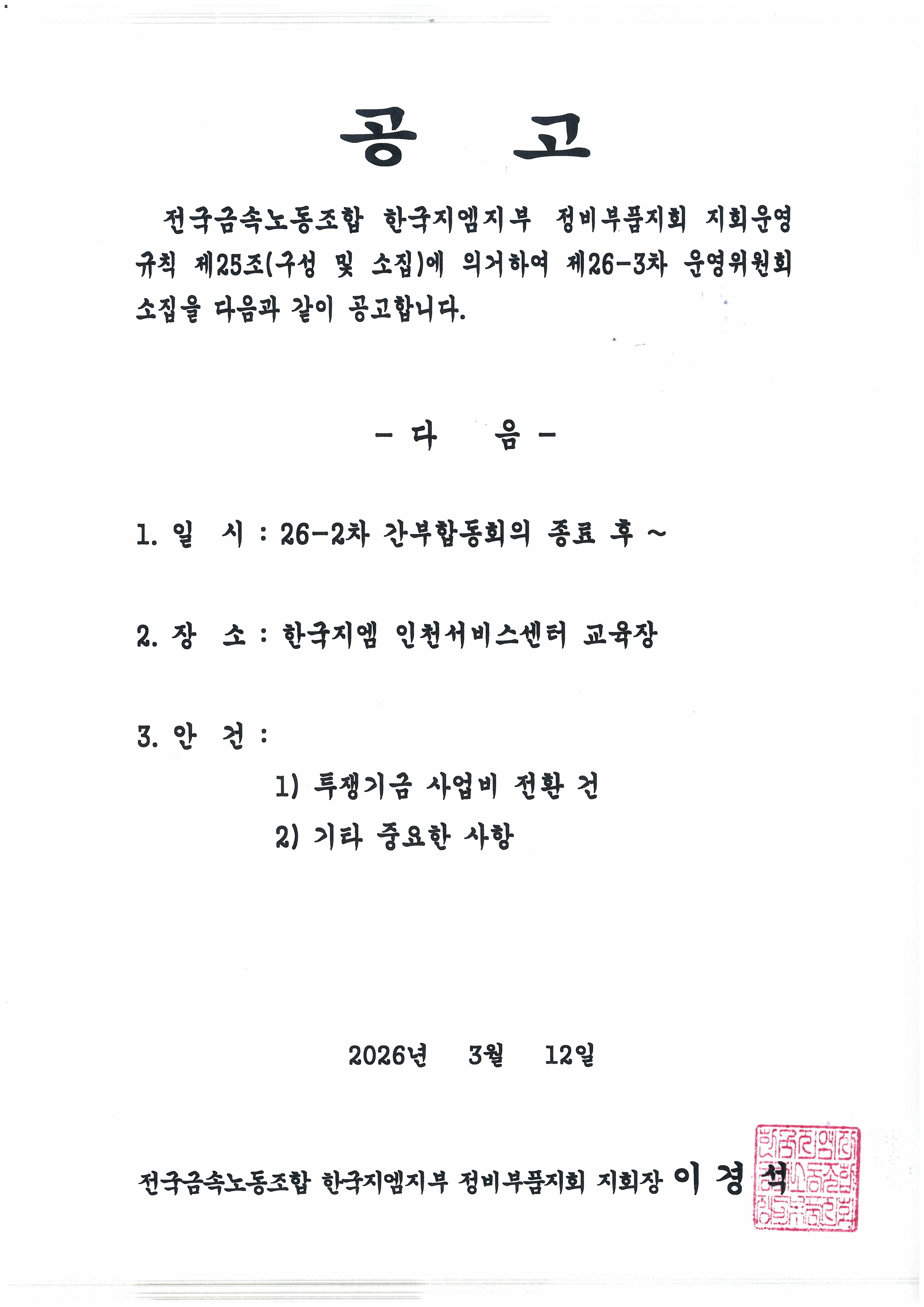 26-2Â÷ °£ºÎÇÕµ¿È¸ÀÇ ¹× 26-3Â÷ ¿î¿µÀ§¿ø